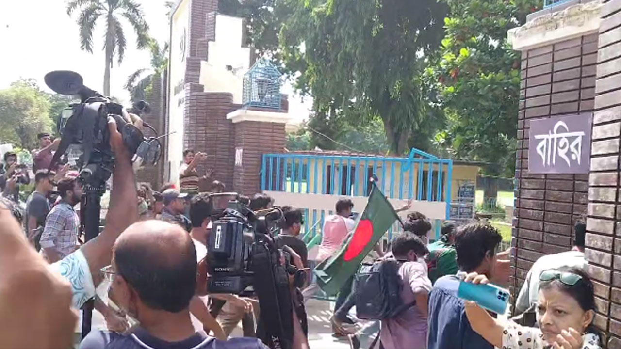মূল ফটকের তালা ভেঙে ক্যাম্পাসে প্রবেশ করলেন রাবি শিক্ষার্থীরা