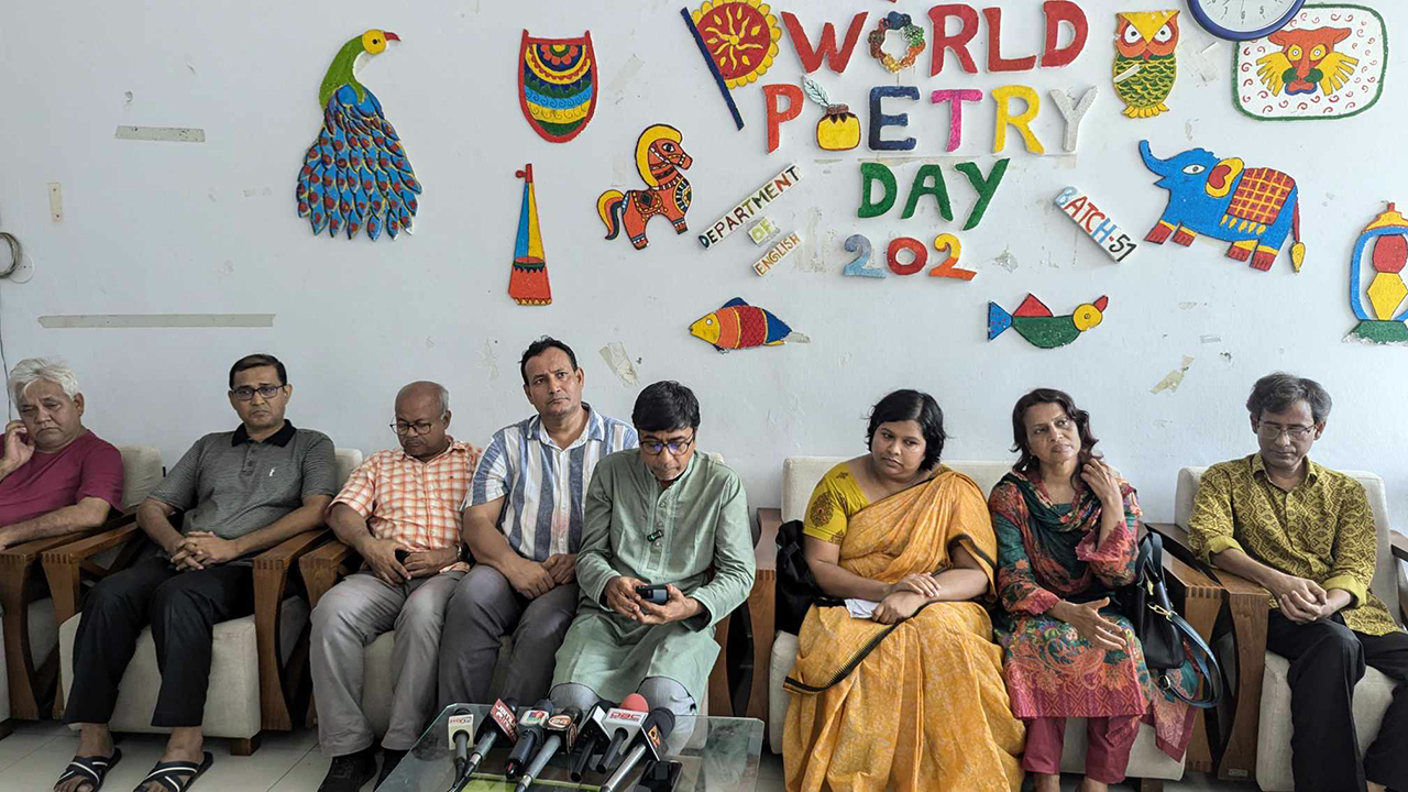 শনিবার (৩ আগস্ট) বিকেল ৩টায় বিশ্ববিদ্যালয়ের কলা ও মানবিকী অনুষদের শিক্ষক লাউঞ্জে নিপীড়নবিরোধী শিক্ষকসমাজের ব্যানারে অনুষ্ঠিত এক সংবাদ সম্মেলনে তারা এ দাবি জানান।
