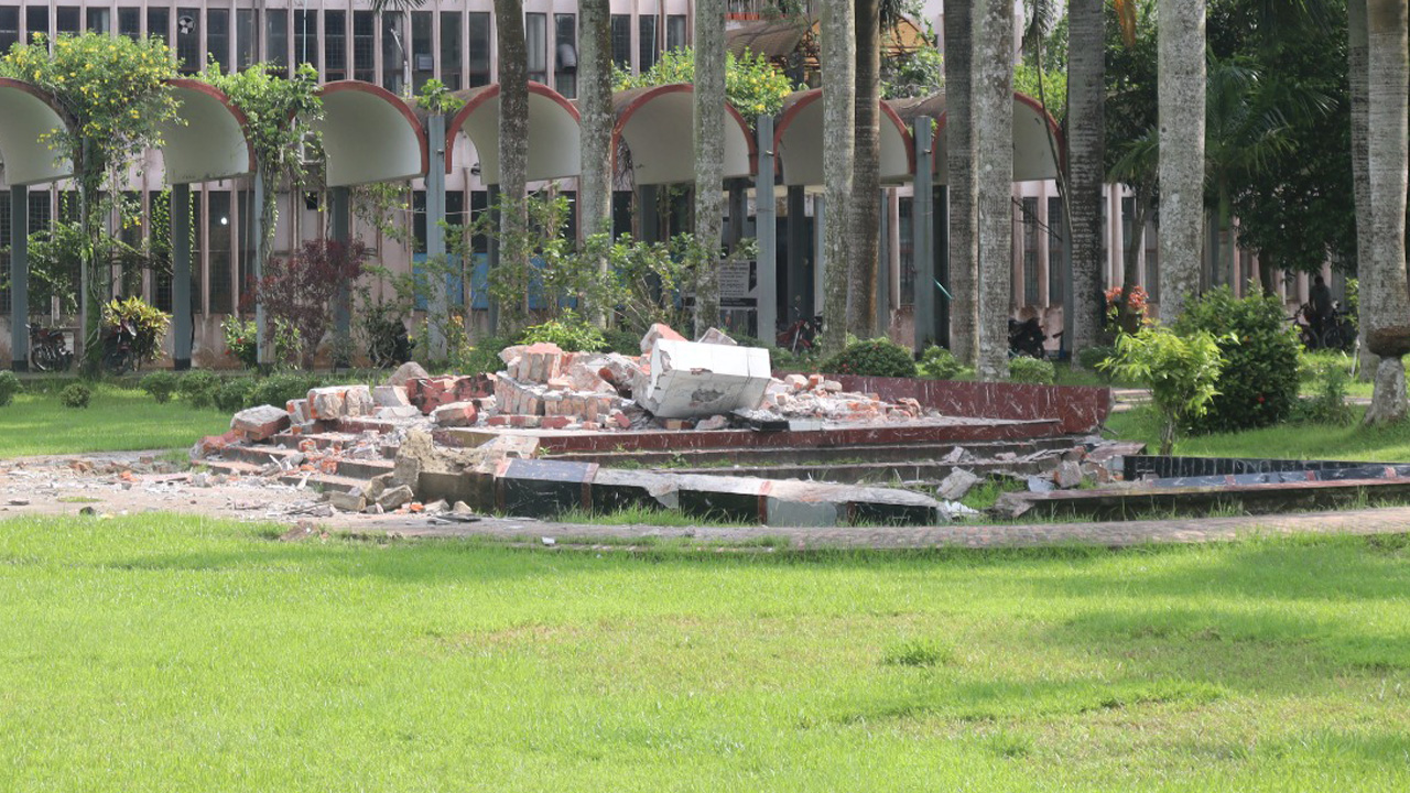 বাকৃবির বঙ্গবন্ধু স্মৃতি চত্বর গুড়িয়ে দিল দুর্বৃত্তরা