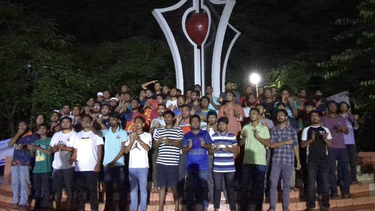 এ সময় শিক্ষার্থীরা, ‘পেতে চাও মুক্তি, ছাড়ো ভারত ভক্তি’, ‘ভারতীয় আগ্রাসন ভেঙে দাও গুঁড়িয়ে দাও’, ‘বন্যায় যখন মানুষ মরে, আবরার তোমায় মনে পরে’ ইত্যাদি স্লোগান দিতে থাকেন।