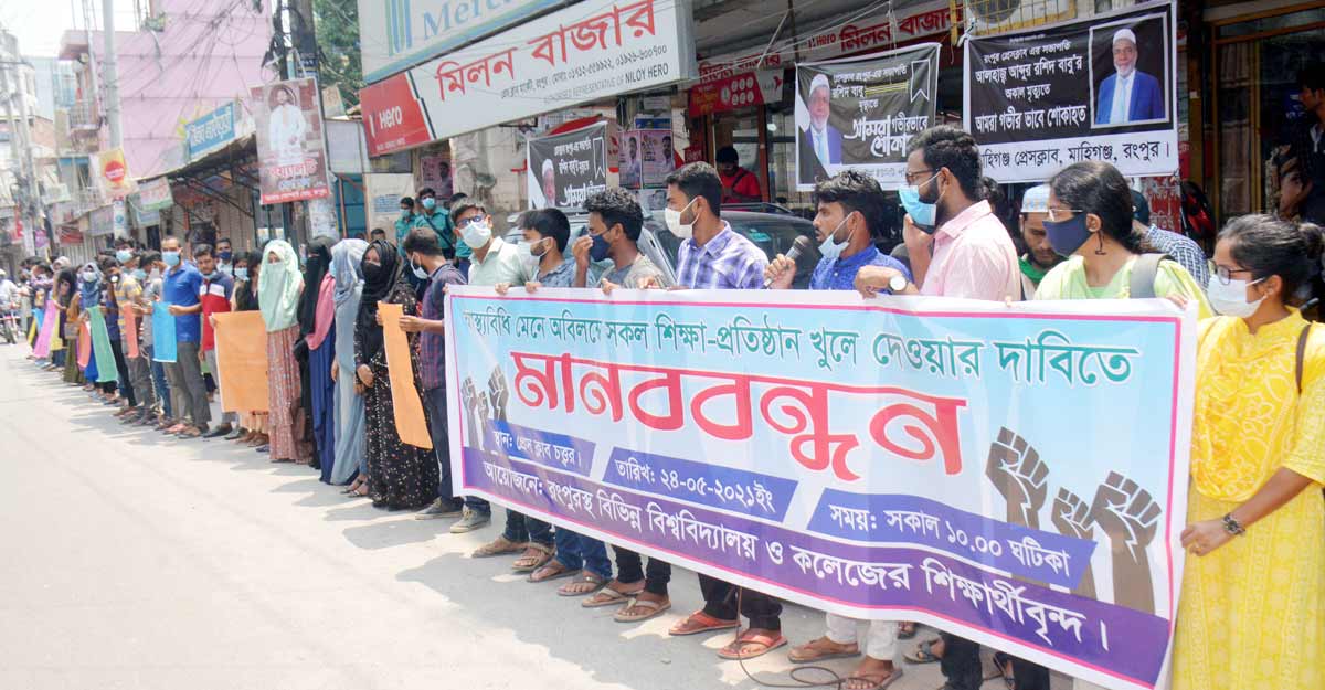 শিক্ষাপ্রতিষ্ঠান খুলে দেওয়ার দাবিতে রংপুরে মানববন্ধন