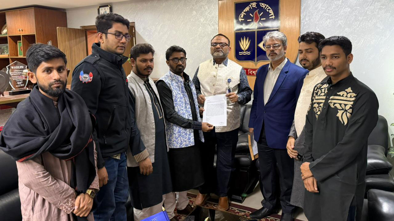বুধবার (২৯ জানুয়ারি) বিকেলে ঢাকা বিশ্ববিদ্যালয়ের উপাচার্য অধ্যাপক ড. নিয়াজ আহমদ খানের সঙ্গে সাক্ষাৎ করে এ স্মারকলিপি প্রদান করেন তিনি।