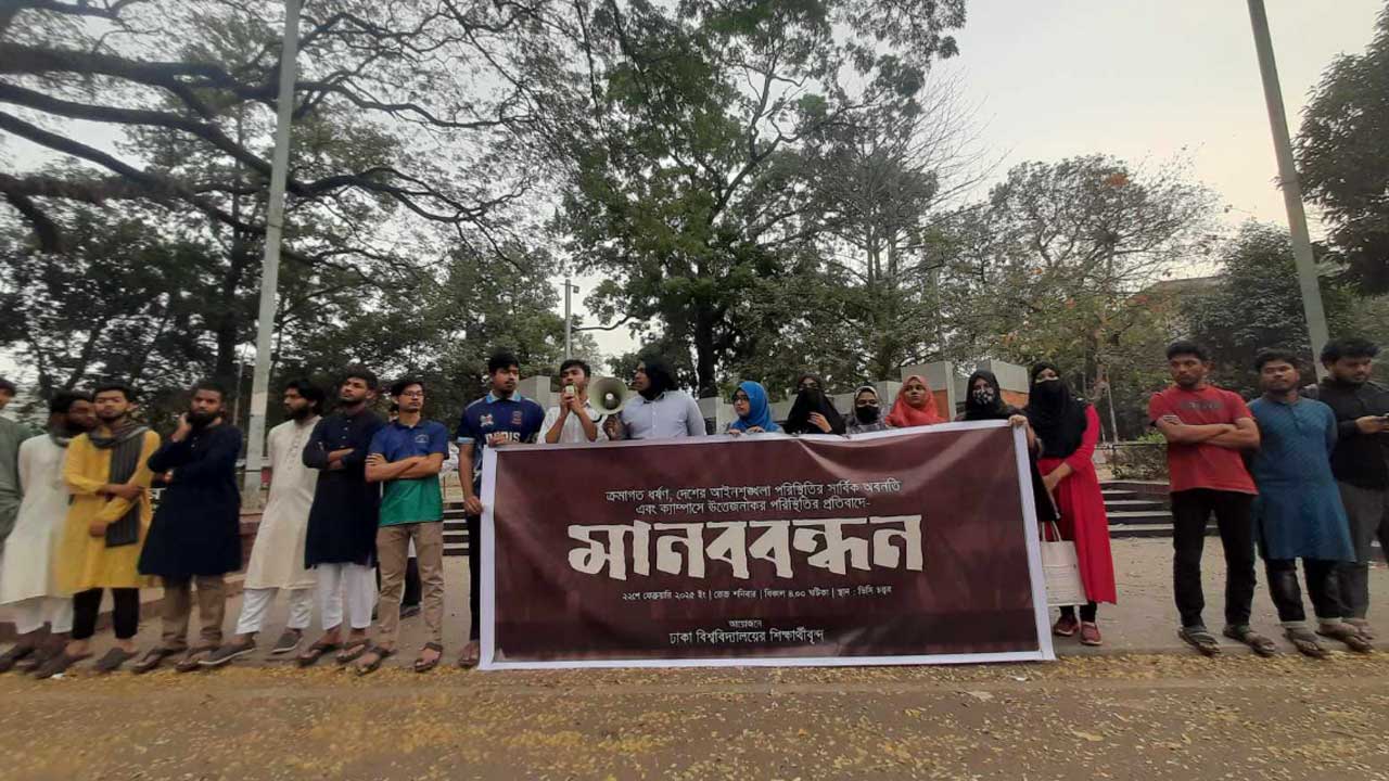 আইন-শৃঙ্খলা পরিস্থিতির অবনতির প্রতিবাদে ঢাবিতে মানববন্ধন
