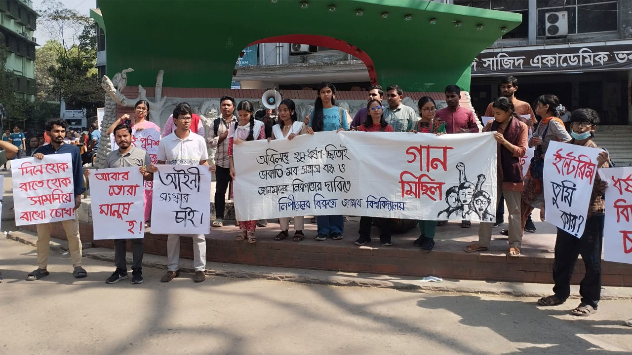 গানে গানে ধর্ষণ-ছিনতাই-খুনের বিরুদ্ধে জবি শিক্ষার্থীদের প্রতিবাদ