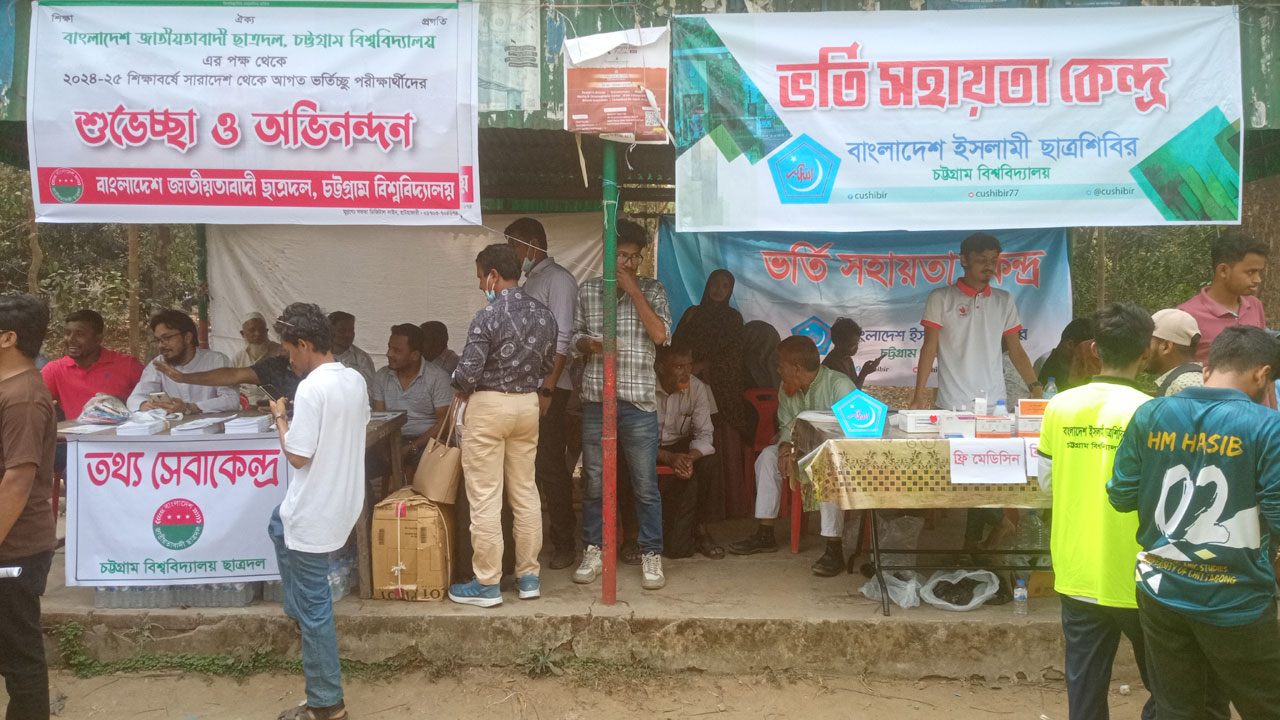 অপরদিকে ছাত্রশিবিরের নেতাকর্মীরা জিরো পয়েন্ট, ব্যবসায় প্রশাসন অনুষদ, আবু ইউসুফ ভাবন সংলগ্ন ও সোহরাওয়ার্দী মোড়ে বুথ বসিয়েছেন। সেখানে তারা তথ্য সহায়তা, সুপেয় পানি, কলম, প্রাথমিক চিকিৎসা সেবা দিচ্ছেন। এছাড়া ভর্তিচ্ছুদের সঙ্গে আসা অভিভাবকদের জন্য বসার ব্যবস্থাও করেন।