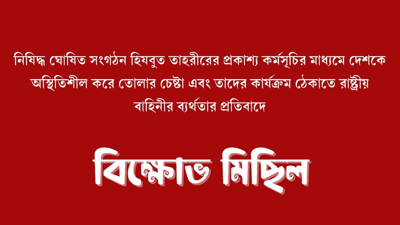 নিষিদ্ধ ঘোষিত সংগঠন হিজবুত তাহরীরের কর্মসূচির প্রতিবাদে বিক্ষোভের ডাক দিয়েছে গণতান্ত্রিক ছাত্র সংসদ।
