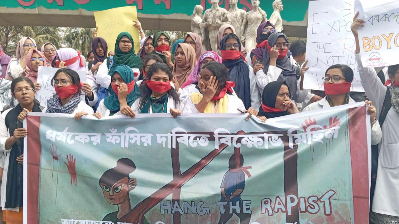 ধর্ষকদের ফাঁসির দাবিতে মেডিক্যাল শিক্ষার্থীদের বিক্ষোভ