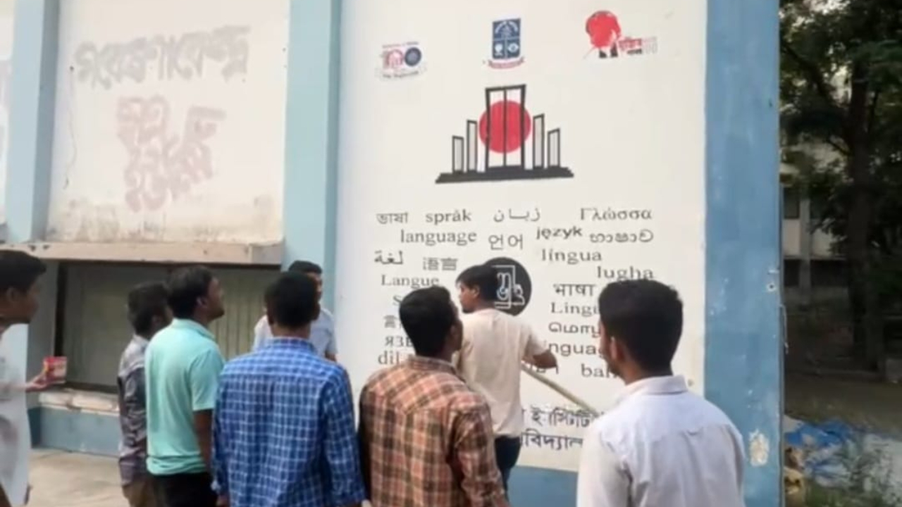 শেখ মুজিবের গ্রাফিতি মুছলো ঢাবি ছাত্রদলের নেতাকর্মীরা