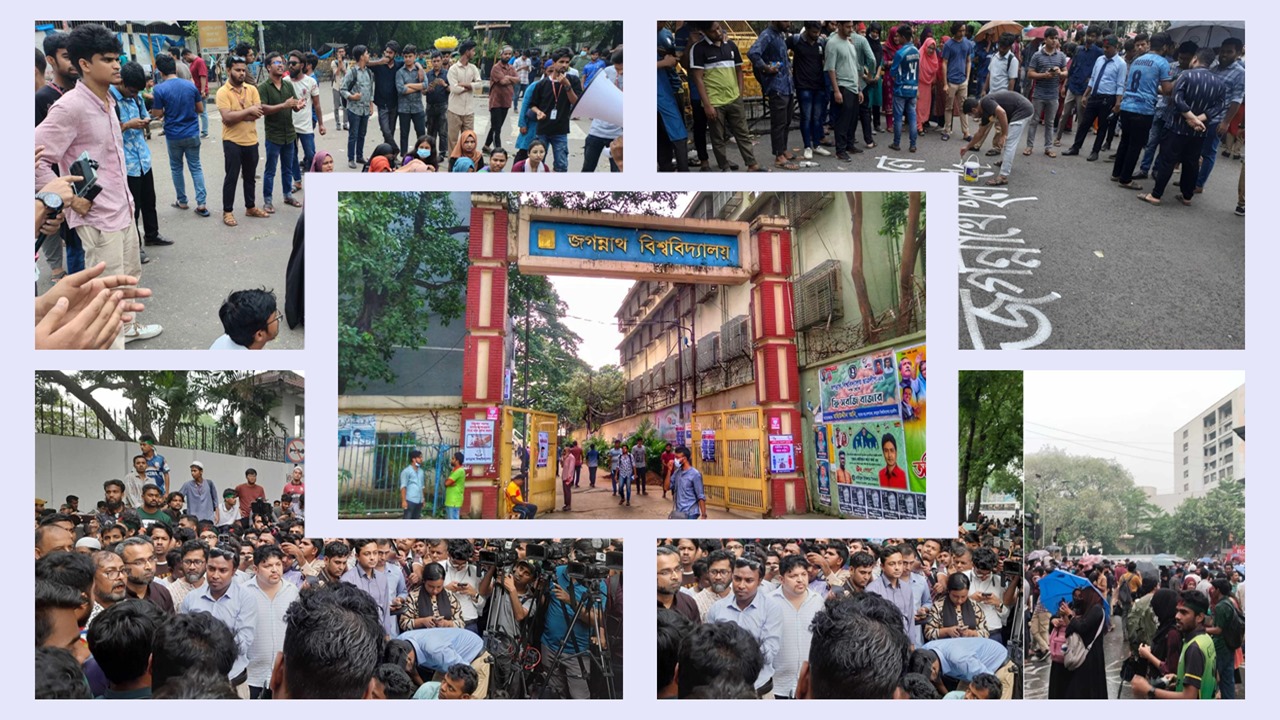 জগন্নাথ বিশ্ববিদ্যালয়ে শিক্ষার্থীদের আন্দোলনের আজ দ্বিতীয় দিন পার হলো। গতকালের উত্তাল পরিস্থিতির পর আজও দিনভর নানা ঘটনা ঘটেছে। বৃহস্পতিবার সকাল থেকে শিক্ষার্থীরা নতুন উদ্যমে তাদের কর্মসূচি চালিয়ে যাচ্ছেন। প্রতিবাদ সমাবেশ এবং অবস্থান কর্মসূচির মাধ্যমে তারা দাবি আদায়ে অনড় রয়েছেন। পরিস্থিতি ক্রমশ জটিল আকার ধারণ করছে এবং এই অচলাবস্থা কতদিন চলতে থাকে, সেদিকে সবার দৃষ্টি। আর আন্দোলনের গতিপ্রকৃতি কোন দিকে মোড় নেয়, সেটাই এখন দেখার বিষয়।