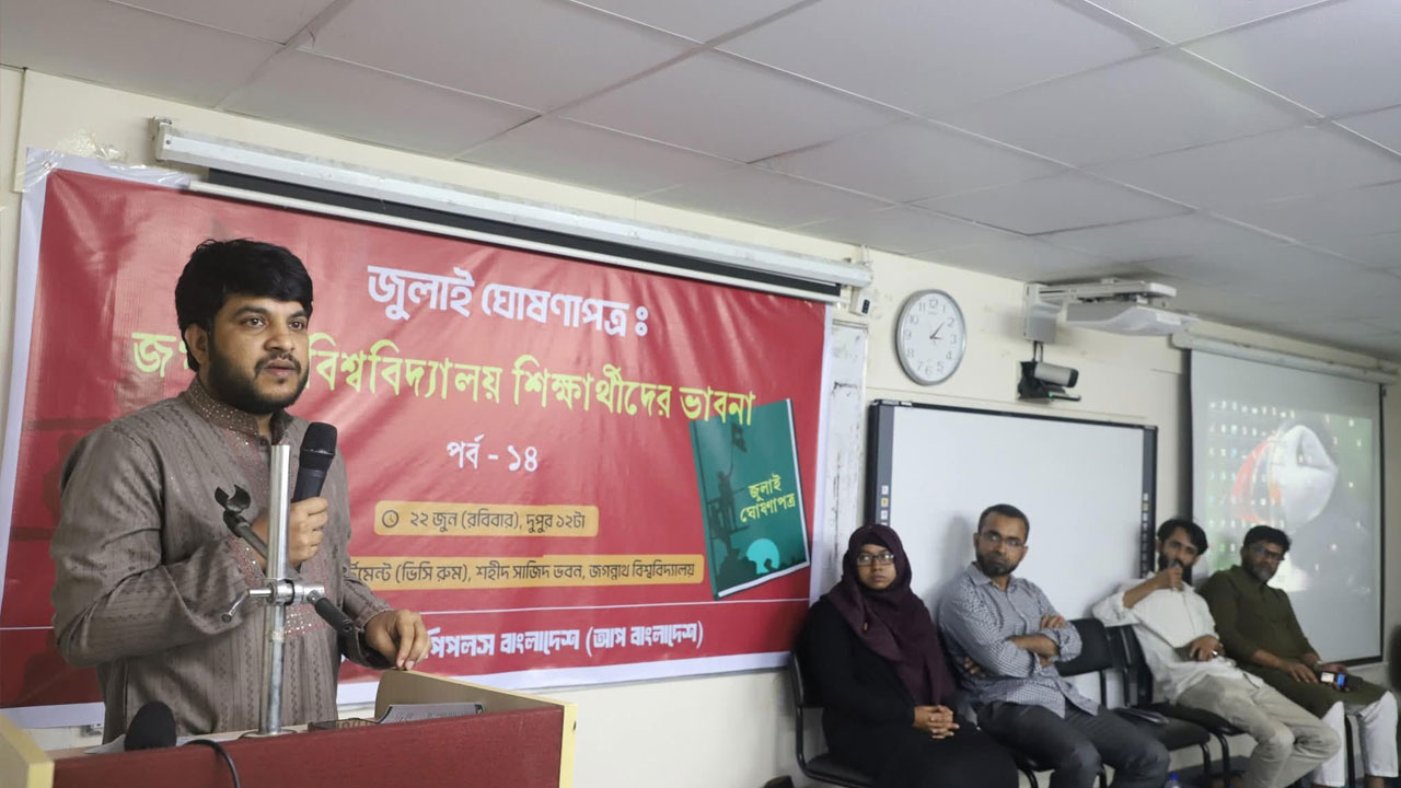 রোববার (২২ জুন) আপ বাংলাদেশের আয়োজনে ‘জুলাই ঘোষণাপত্র: জগন্নাথ বিশ্ববিদ্যালয় শিক্ষার্থীদের ভাবনা’ শীর্ষক এক আলোচনা সভায় এসব কথা বলেন তিনি।