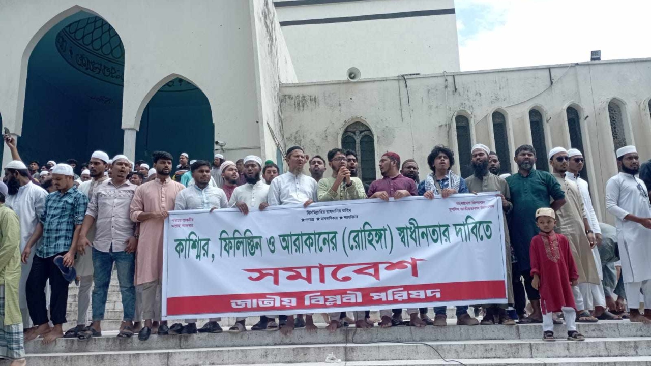 জিহাদি ইহসান বলেন, ফিলিস্তিনে দখলদার ইসরায়েলি বাহিনী, কাশ্মীরে দখলদার ভারতীয় সেনা এবং আরাকানে মিয়ানমার সেনাবাহিনীর দ্বারা পরিচালিত অব্যাহত দমন-পীড়ন আন্তর্জাতিক আইন ও মানবাধিকারের চরম লঙ্ঘন। এই বর্বরতার বিরুদ্ধে আমাদের প্রতিবাদ শুধু একটি রাজনৈতিক অবস্থান নয়, বরং এটি ঈমানি দায়িত্ব। আমরা আন্তর্জাতিক মানবাধিকার সংগঠন, মিডিয়া এবং মুসলিম বিশ্বের প্রতিটি বিবেকবান নাগরিককে আহ্বান জানাই- এই নির্যাতিত জনগোষ্ঠীগুলোর পক্ষে দাঁড়ান, তাদের জন্য আওয়াজ তুলুন। প্রতি জুমার নামাজে ফিলিস্তিনের পক্ষে খুতবা পাঠ করুন।