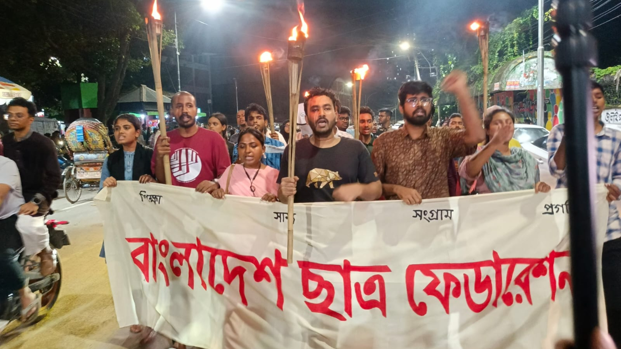 সব হত্যাকাণ্ড ও ধর্ষণের বিচার দাবিতে ঢাবিতে ছাত্র ফেডারেশনের মশাল মিছিল