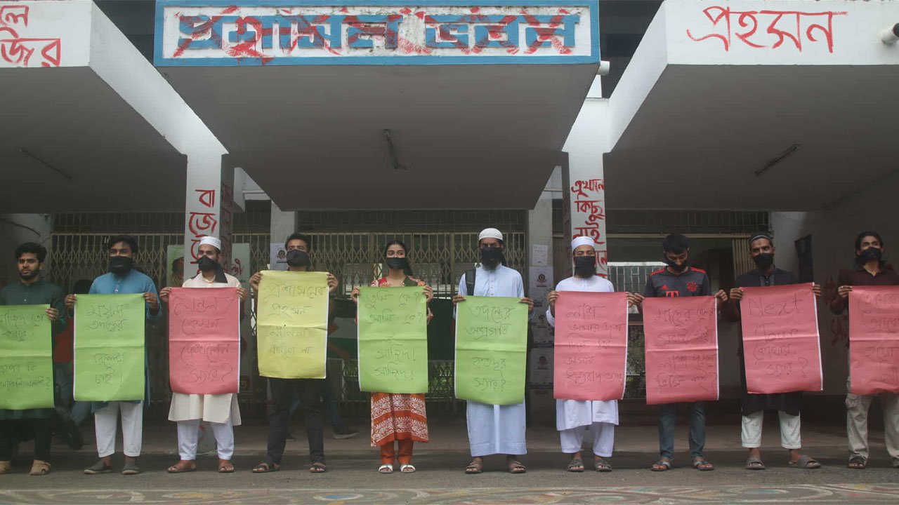 সোমবার (২৮ জুলাই) বিকেল ৩টা থেকে সাড়ে ৪টা পর্যন্ত বিশ্ববিদ্যালয়ের প্রশাসন ভবনের সামনে তারা এই কর্মসূচি পালন করেন। এ সময় তাদের হাতে বিভিন্ন লেখা সম্বলিত ফেস্টুন দেখা যায়।