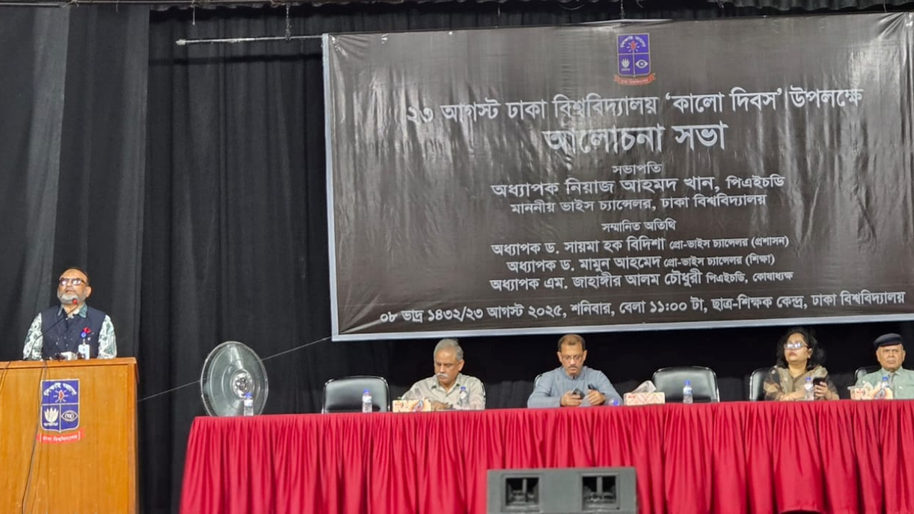 শনিবার (২৩ আগস্ট) ঢাকা বিশ্ববিদ্যালয় কালো দিবস উপলক্ষ্যে ছাত্র-শিক্ষক কেন্দ্রের (টিএসসি) মিলনায়তনে আয়োজিত এক আলোচনা সভায় সভাপতির বক্তব্যে তিনি এসব কথা বলেন।