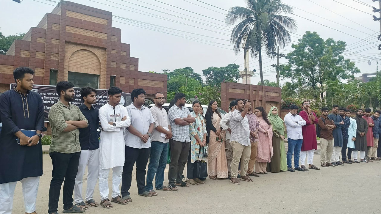 রোববার (৩১ আগস্ট) বিকেল পৌনে ৪টায় বিশ্ববিদ্যালয়ের প্রধান ফটক সংলগ্ন ডেইরি গেটে এ মানববন্ধন অনুষ্ঠিত হয়।