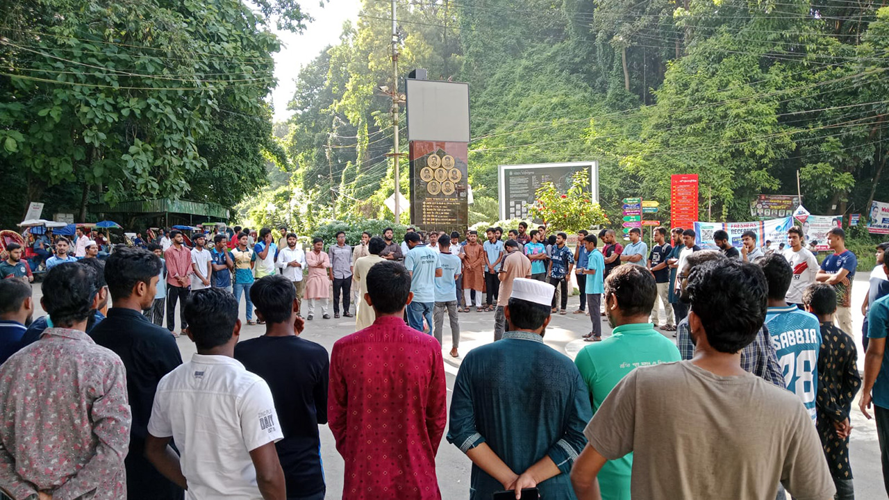 বুধবার (৩ সেপ্টেম্বর) বিকেলে বিশ্ববিদ্যালয়ের জিরো পয়েন্টে এ কর্মসূচি পালন করেন সংগঠনটির নেতাকর্মীরা।