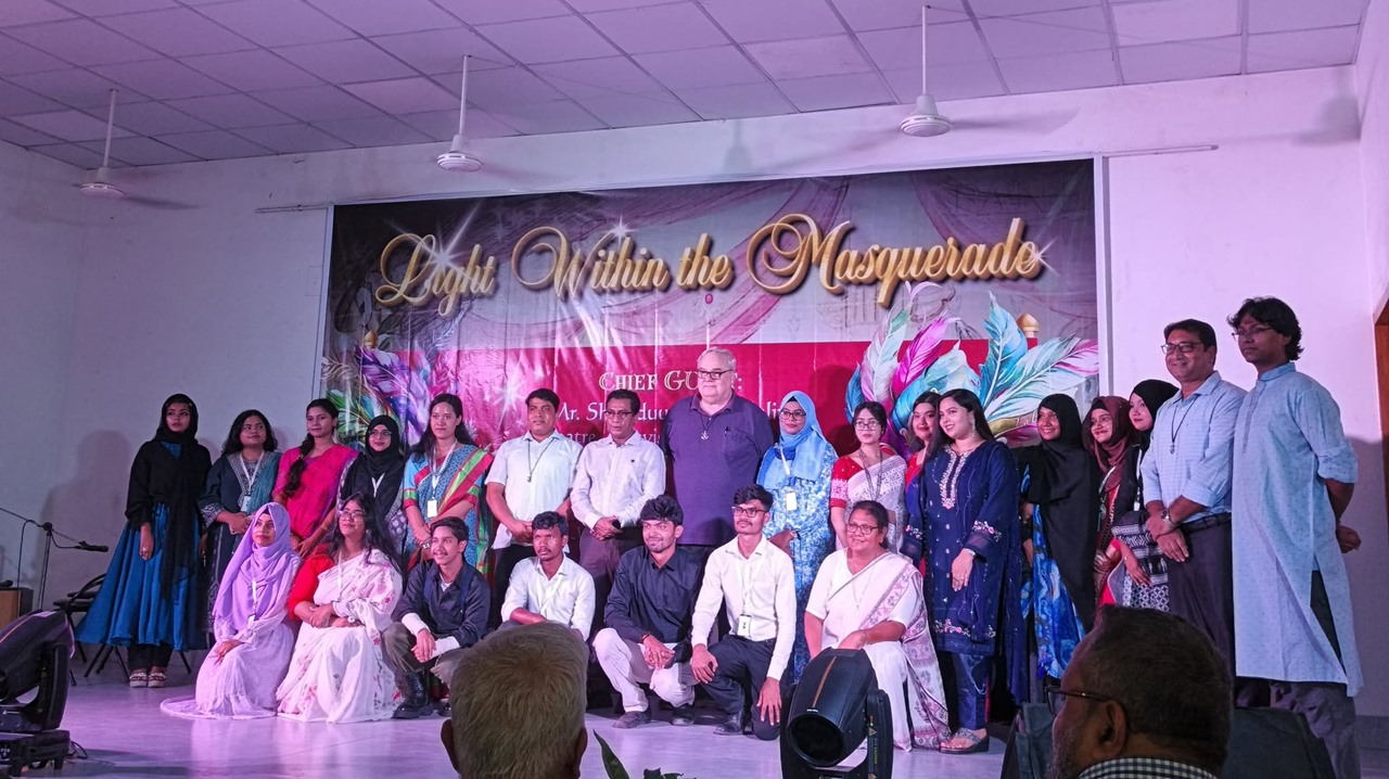 ইংরেজি বিভাগের চেয়ারম্যান অধ্যাপক গোলাম সরোয়ার চৌধুরী বলেন, আমরা সবাই মুখোশ পরে বাঁচি— কখনো সমাজ চাপিয়ে দেয়, কখনো ভয়, উচ্চাকাঙ্ক্ষা বা টিকে থাকার প্রয়োজনে আমরা নিজেরাই তৈরি করি। মুখোশ মিথ্যা নয়, এটি অনেক সময় ঢাল। সাহিত্য ও জীবনে ‘লাইট উইদিন দ্য মাস্কারেড’ আসলে আমাদের অন্তরের আলো—দৃশ্যমান হওয়ার সাহস।
