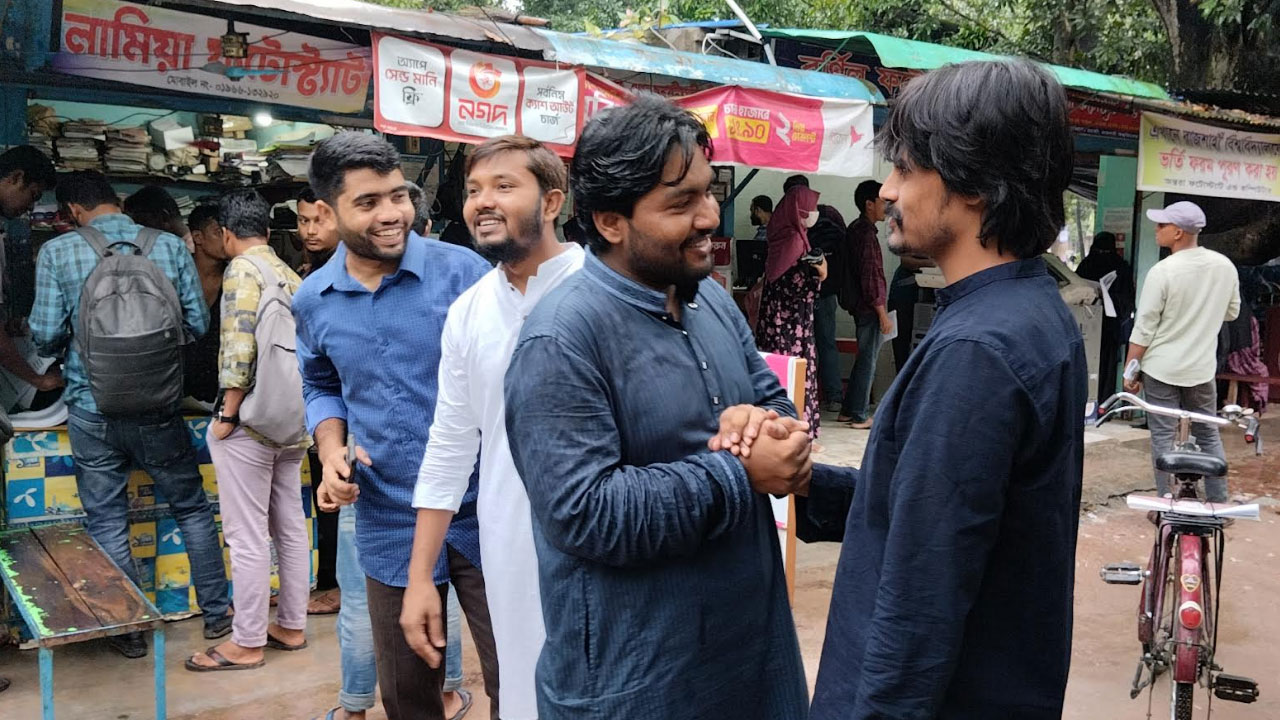 সরেজমিনে দেখা যায়, প্রার্থীরা বৃষ্টির মধ্যেই টুকিটাকি চত্বর, পরিবহন মার্কেট, সিরাজী ভবন, রবীন্দ্রনাথ ঠাকুর একাডেমিক ভবনে আশে পাশের টং দোকান, চায়ের দোকান, খাবারের হোটেল, একাডেমিক ভবনের সামনের ছাউনিগুলোতে যে সকল শিক্ষার্থীরা আছেন তাদের কাছে প্রচারণা চালাচ্ছেন।