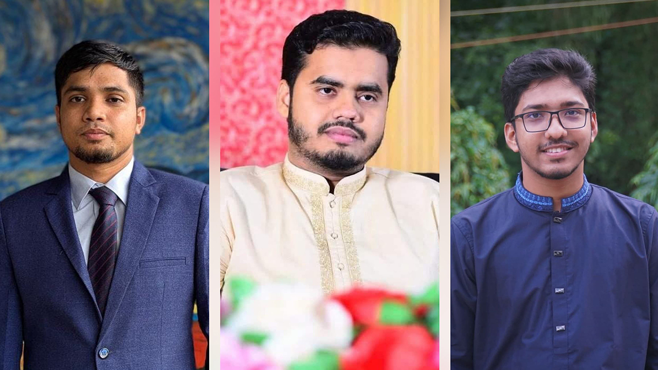 ছবির মাঝখানে ইব্রাহিম হোসেন রনি, ডান পাশে চোখে চশমা পরা সাঈদ বিন হাবিব এবং বাম পাশে সাজ্জাদ হোসাইন মুন্না
