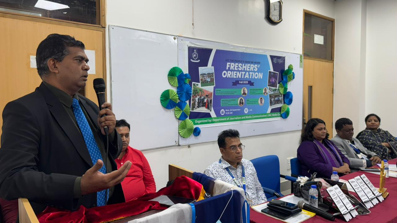 অনুষ্ঠানে প্রধান অতিথি বিশ্ববিদ্যালয়ের উপ-উপাচার্য অধ্যাপক ড. খাজা ইফতেখার উদ্দিন আহমেদ বলেন, সাংবাদিকতার চ্যালেঞ্জ এবং কৃত্রিম বুদ্ধিমত্তার যুগে সাংবাদিকতা কীভাবে আরো ফলপ্রসূ করা যায়- সে বিষয়ে দক্ষতা অর্জন করা জরুরি। শুধু পুঁথিগত পড়াশোনার মধ্যে নিজেকে সীমাবদ্ধ রাখলেই হবে না। বর্তমান সময়ের জব মার্কেটের জন্য প্রয়োজনীয় দক্ষতাসমূহ ও ডিজিটাল টুলসগুলোর উপর দক্ষতা অর্জন করতে হবে। সময়ের সাথে সাথে নিজেকে আপডেট করতে হবে।