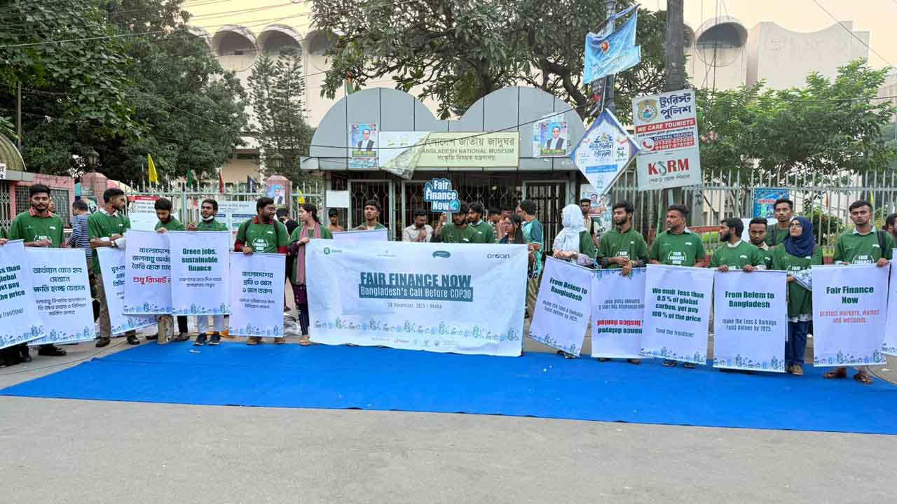 শনিবার (৮ নভেম্বর) জাতীয় জাদুঘরের সামনে অনুষ্ঠিত এ কর্মসূচির শিরোনাম ছিল ‘ফেয়ার ফাইন্যান্স নাও : বাংলাদেশ’স কল বিফোর কপ-৩০’। আয়োজনে অংশ নেয় বিভিন্ন যুব ও কমিউনিটি সংগঠন।