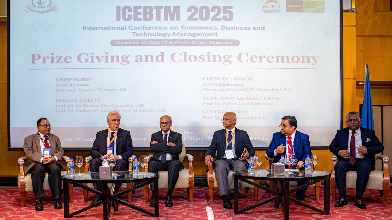 ইনডিপেনডেন্ট ইউনিভার্সিটি, বাংলাদেশ (আইইউবি)-এর স্কুল অব বিজনেস অ্যান্ড অন্ট্রপ্রনারশিপ (এসবিই)-এর আয়োজনে ঢাকার ওয়েস্টিন হোটেলে শেষ হলো দুইদিনের আন্তর্জাতিক সম্মেলন ইন্টারন্যাশনাল কনফারেন্স অন ইকোনমিক্স, বিজনেস অ্যান্ড টেকনোলজি ম্যানেজমেন্ট ২০২৫ (আইসিইবিটিএম ২০২৫)।