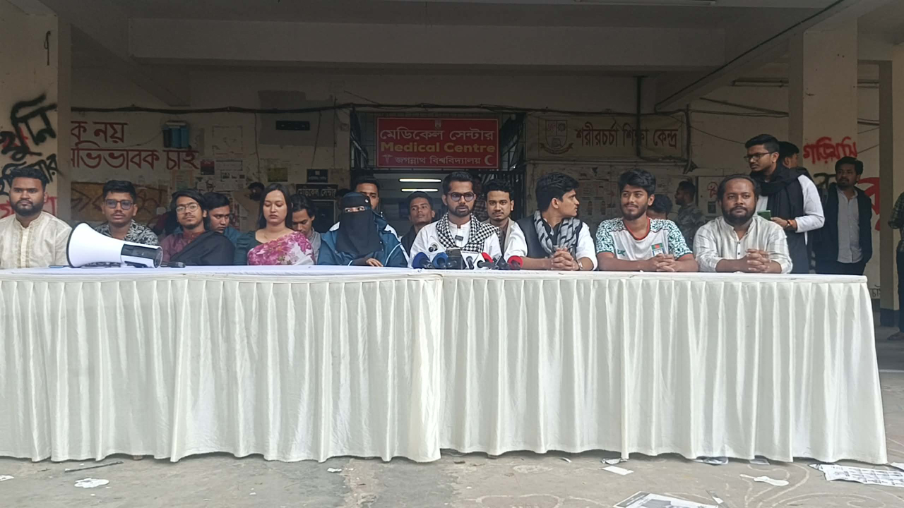 সংবাদ সম্মেলনে ছাত্রদল সমর্থিত ‘ঐক্যবদ্ধ নির্ভীক জবিয়ান’ প্যানেলের অন্যান্য প্রার্থীরা উপস্থিত ছিলেন।