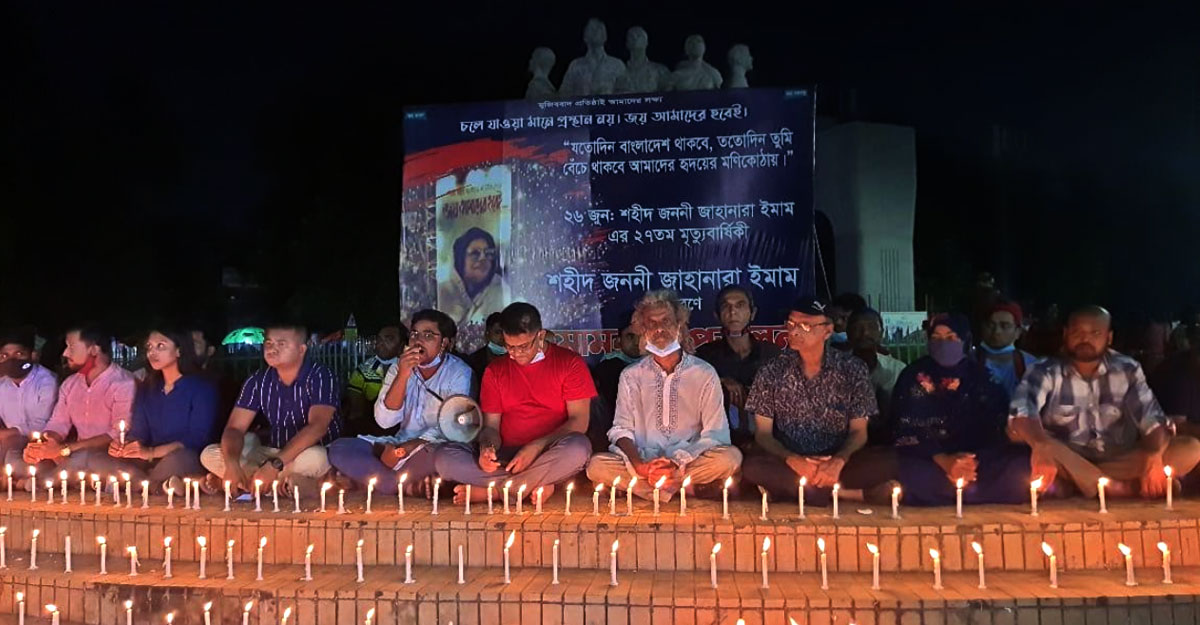 জাহানারা ইমামের স্মরণে মুক্তিযুদ্ধ মঞ্চের মোমবাতি প্রজ্বলন