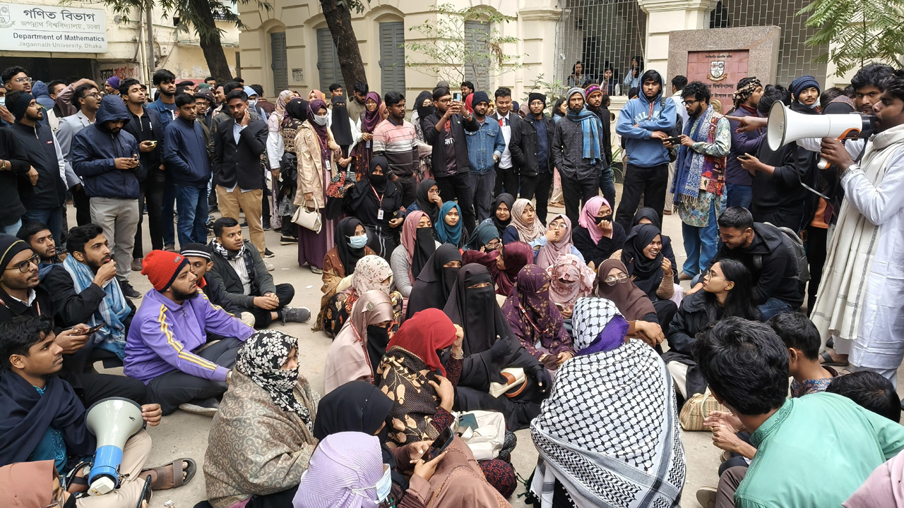 জগন্নাথ বিশ্ববিদ্যালয় কেন্দ্রীয় শিক্ষার্থী সংসদ (জকসু) ও হল সংসদ নির্বাচন স্থগিতের সিদ্ধান্ত প্রত্যাখান করে আজই নির্বাচনের দাবিতে অবস্থান করছেন নারী শিক্ষার্থীরা।