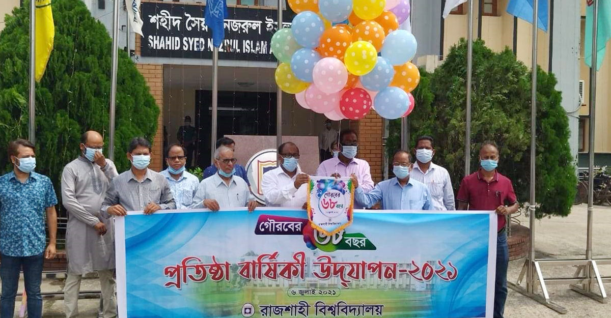 মহামারি করোনাভাইরাসের কারণে রাজশাহী বিশ্ববিদ্যালয়ের (রাবি) ৬৮তম প্রতিষ্ঠাবার্ষিকী সীমিত পরিসরে উদযাপিত হয়েছে। মঙ্গলবার (০৬ জুলাই) সকাল ১০টায় বিশ্ববিদ্যালয়ের শহীদ সৈয়দ নজরুল ইসলাম ভবনের সামনে প্রতিষ্ঠাবার্ষিকীর উদ্বোধন করেন উপাচার্য (রুটিন দায়িত্ব) অধ্যাপক ড. আনন্দ কুমার সাহা।