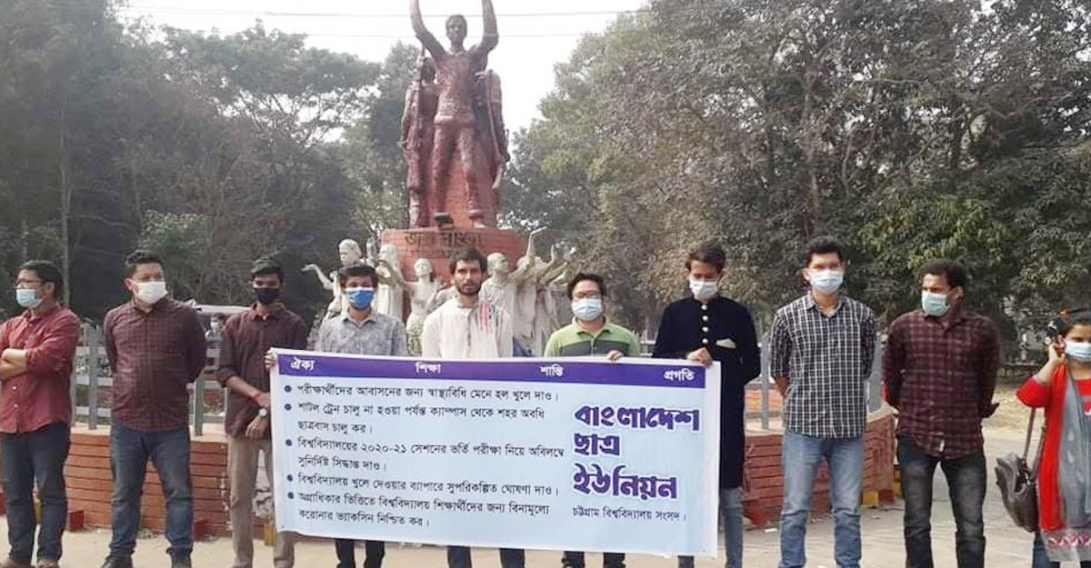 দাবি হলো— পরীক্ষার্থীদের আবাসনের স্বার্থে নিয়ম মেনে আবাসিক হল খুলে দেওয়া, শাটল ট্রেন চালু না হওয়া পর্যন্ত শিক্ষার্থীদের জন্য বাস সার্ভিস চালু, ২০২০-২১ শিক্ষাবর্ষে ভর্তি পরীক্ষার বিষয়ে দ্রুত সুনির্দিষ্ট ঘোষণা, অবিলম্বে বিশ্ববিদ্যালয় খুলে দেওয়ার ব্যাপারে সুপরিকল্পিত ঘোষণা ও অগ্রাধিকার ভিত্তিতে শিক্ষার্থীদের জন্য বিনামূল্যে করোনার ভ্যাকসিন নিশ্চিত করা।