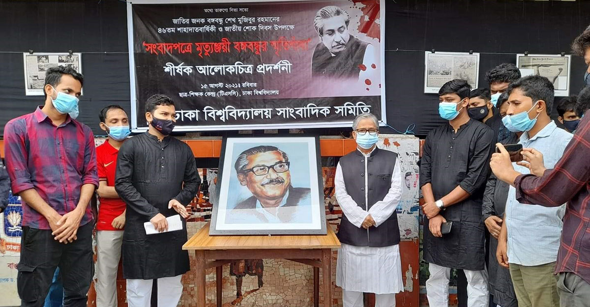 জাতির পিতা বঙ্গবন্ধু শেখ মুজিবুর রহমানের ৪৬তম শাহাদত বার্ষিকী ও জাতীয় শোক দিবস উপলক্ষে বঙ্গবন্ধুর দুর্লভ ও ঐতিহাসিক ছবি নিয়ে আলোকচিত্র প্রদর্শনী করেছে ঢাকা বিশ্ববিদ্যালয় সাংবাদিক সমিতি (ডুজা)।