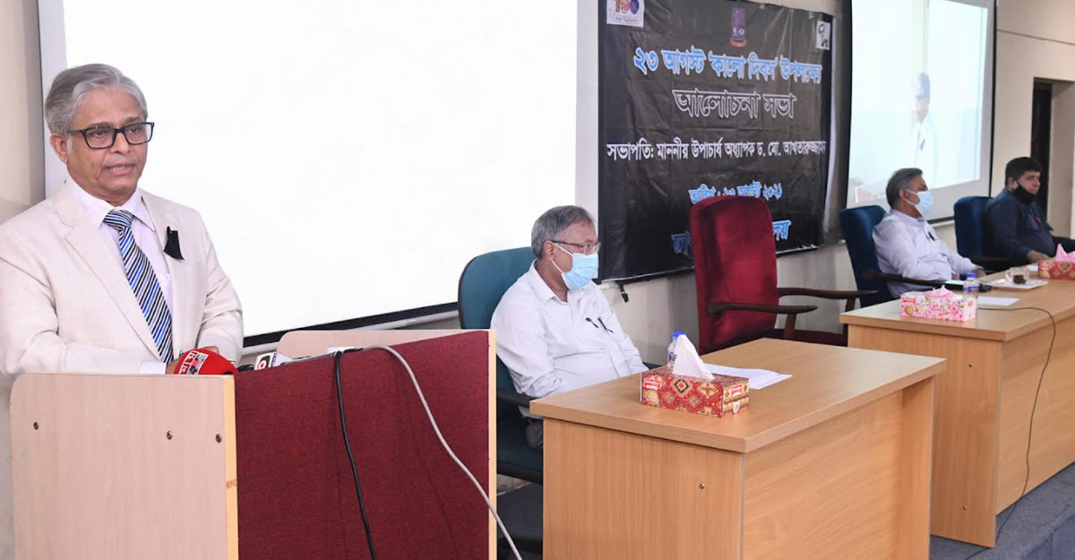 দিবসটি উপলক্ষে ঢাবির শিক্ষক, কর্মকর্তা, কর্মচারীরা কালো ব্যাজ ধারণ করেন। সোমবার (২৩ আগস্ট) বেলা ১১টায় দিবসটি উপলক্ষে প্রশাসনিক ভবনের অধ্যাপক আব্দুল মতিন চৌধুরী ভার্চুয়াল ক্লাসরুমে এক ভার্চুয়াল আলোচনা সভার আয়োজন করা হয়। এতে সভাপতিত্ব করেন উপাচার্য অধ্যাপক ড. মো. আখতারুজ্জামান।