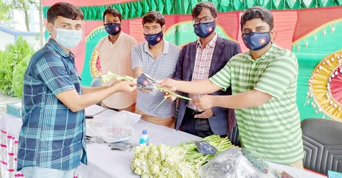 ফুল দিয়ে পাবিপ্রবির শিক্ষার্থীদের বরণ