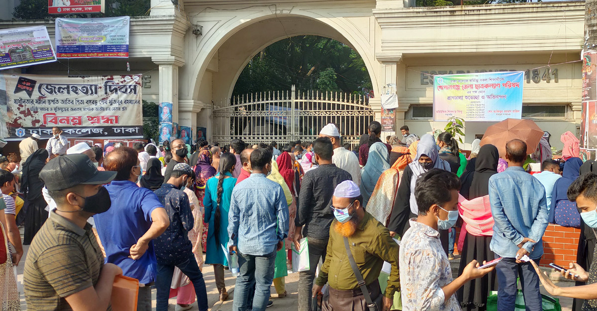 পরীক্ষা সকাল ১০টায় শুরু হলেও পরিবহন ধর্মঘটের কারণে ঝুঁকি এড়াতে অনেক আগে থেকেই কেন্দ্রের সামনে ভিড় করতে দেখা গেছে পরীক্ষার্থীদের।