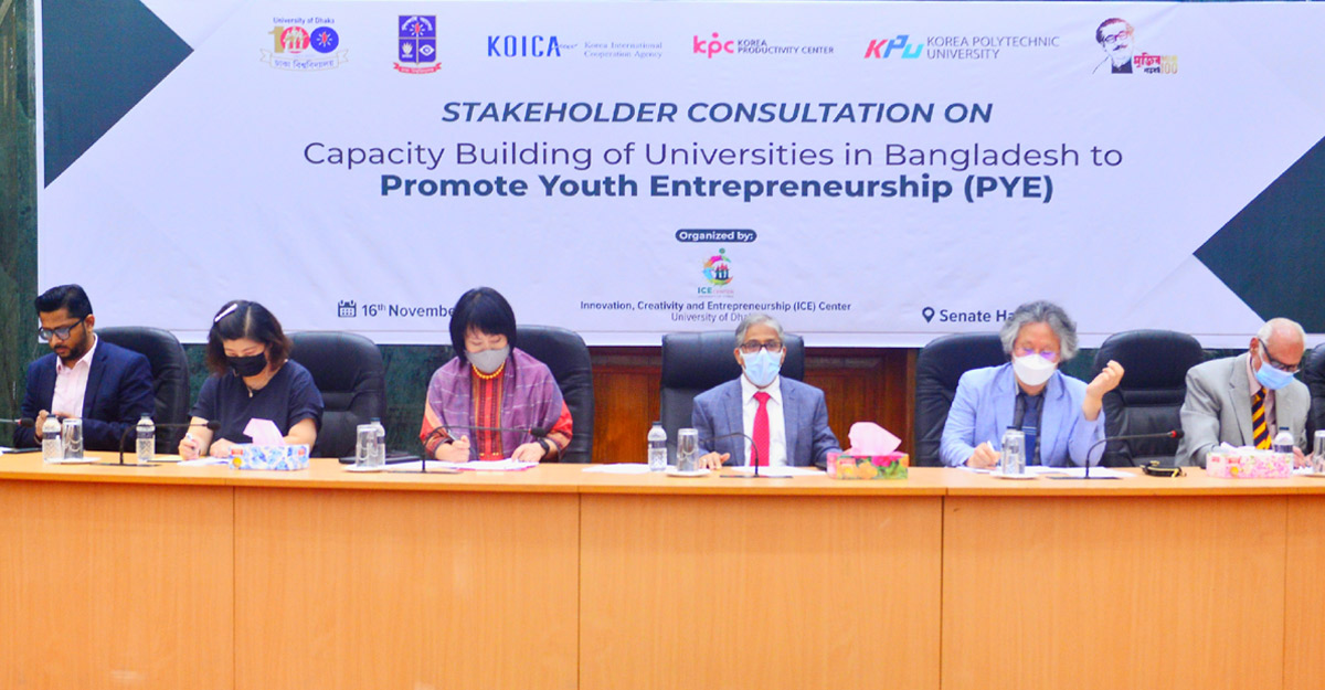 বাংলাদেশ ও দক্ষিণ কোরিয়া সরকারের মধ্যে স্বাক্ষরিত দ্বিপাক্ষিক চুক্তি ‘ক্যাপাসিটি বিল্ডিং অব ইউনিভার্সিটিজ ইন বাংলাদেশ টু প্রমোট ইয়ুথ এন্ট্রাপ্রিনিউরশিপ’-এর অংশ হিসেবে মঙ্গলবার ঢাকা বিশ্ববিদ্যালয়ে (ঢাবি) স্টেকহোল্ডার কনসালটেশন শীর্ষক একটি সেমিনার অনুষ্ঠিত হয়েছে।