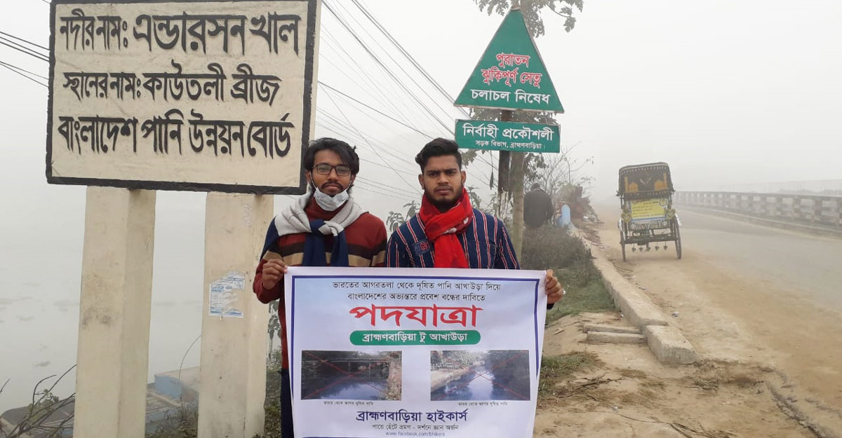 ভারতের আগরতলা থেকে দূষিত পানি বাংলাদেশের ব্রাহ্মণবাড়িয়া হয়ে মিশছে তিতাস নদীতে। এতে স্বাস্থ্যঝুঁকিতে সীমান্তের ১৫ গ্রামের হাজারো মানুষ, ধ্বংসের পথে জীববৈচিত্র্য। তাই শুক্রবার (২৯ জানুয়ারি) ভারতের দূষিত পানির প্রবেশ বন্ধের দাবিতে ২৫ কিলোমিটার পায়ে হেঁটে প্রতিবাদ করেছেন ব্রাহ্মণবাড়িয়ার দুই শিক্ষার্থী।
