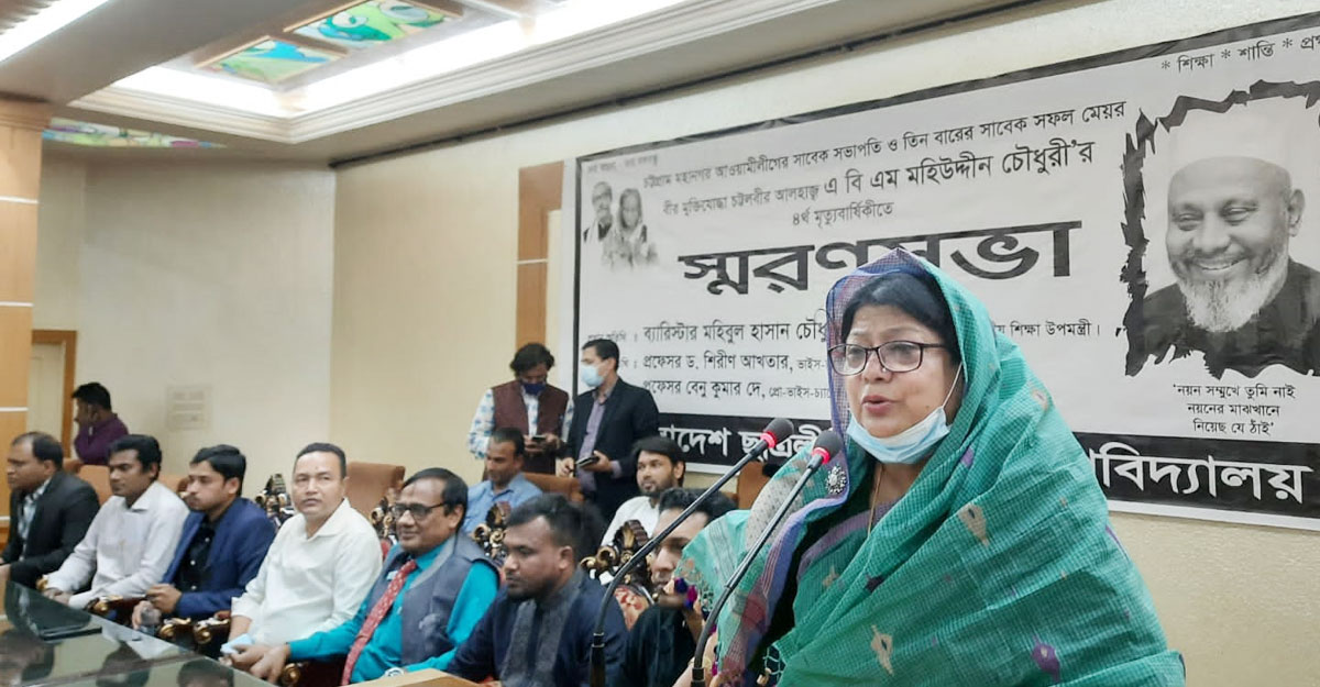 বুধবার (১৫ ডিসেম্বর) এ বি এম মহিউদ্দিন চৌধুরীর চতুর্থ মৃত্যুবার্ষিকী উপলক্ষে চট্টগ্রাম বিশ্ববিদ্যালয় শাখা ছাত্রলীগের উদ্যোগে আয়োজিত স্মরণসভায় উপাচার্য অধ্যাপক ড. শিরীণ আখতার এ কথা বলেন।