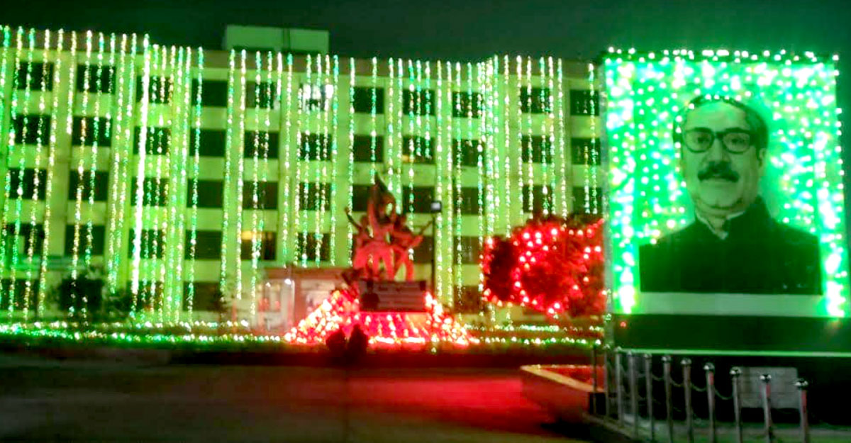 বিশ্ববিদ্যালয়ের উপাচার্য অধ্যাপক ড. মো. দিদার-উল-আলম ঢাকা পোস্টকে বলেন, ১৬ ডিসেম্বর বিজয়ের সুবর্ণজয়ন্তী। আজকের এই দিনে স্বাধীন সার্বভৌম রাষ্ট্র হিসেবে আমাদের এই বাংলাদেশ পৃথিবীর মানচিত্রের বুকে প্রকাশিত হয়। তাই এই দিনটি আমাদের জন্য পবিত্র ও গুরুত্বপূর্ণ একটি দিন। এ উপলক্ষে ক্যাম্পাসের বিভিন্ন স্থাপনা, ম্যুরালে আলোকসজ্জা করা হয়েছে।