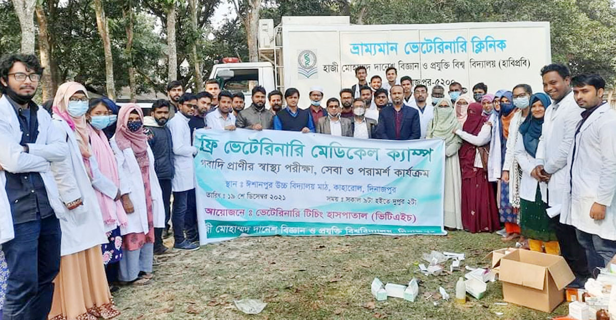 হাজী মোহাম্মদ দানেশ বিজ্ঞান ও প্রযুক্তি বিশ্ববিদ্যালয়ের (হাবিপ্রবি) ভেটেরিনারি টিচিং হাসপাতালের আয়োজনে গবাদিপশুর স্বাস্থ্য পরীক্ষা, সেবা ও পরামর্শ কার্যক্রম ‘ফ্রি ভেটেরিনারি মেডিকেল ক্যাম্প’ অনুষ্ঠিত হয়েছে।