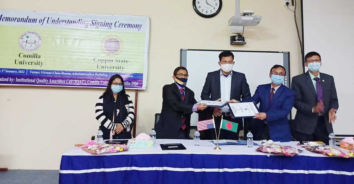 আমেরিকার কোপেন স্টেট ইউনিভার্সিটির সঙ্গে দ্বিপক্ষীয় সমঝোতা স্মারক স্বাক্ষর করেছে কুমিল্লা বিশ্ববিদ্যালয়। সোমবার (৩ জানুয়ারি) সকাল ১১টায় বিশ্ববিদ্যালয়ের ভার্চুয়াল ক্লাসরুমে এ সমঝোতা স্মারক স্বাক্ষর অনুষ্ঠিত হয়।