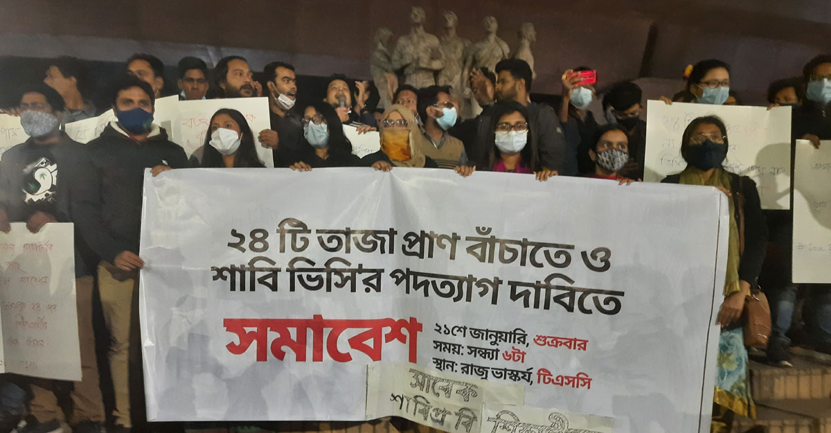 শুক্রবার (২১ জানুয়ারি) সন্ধ্যায় ঢাকা বিশ্ববিদ্যালয়ের (ঢাবি) সন্ত্রাসবিরোধী রাজু ভাস্কর্যের পাদদেশে এ সমাবেশ করেন তারা।