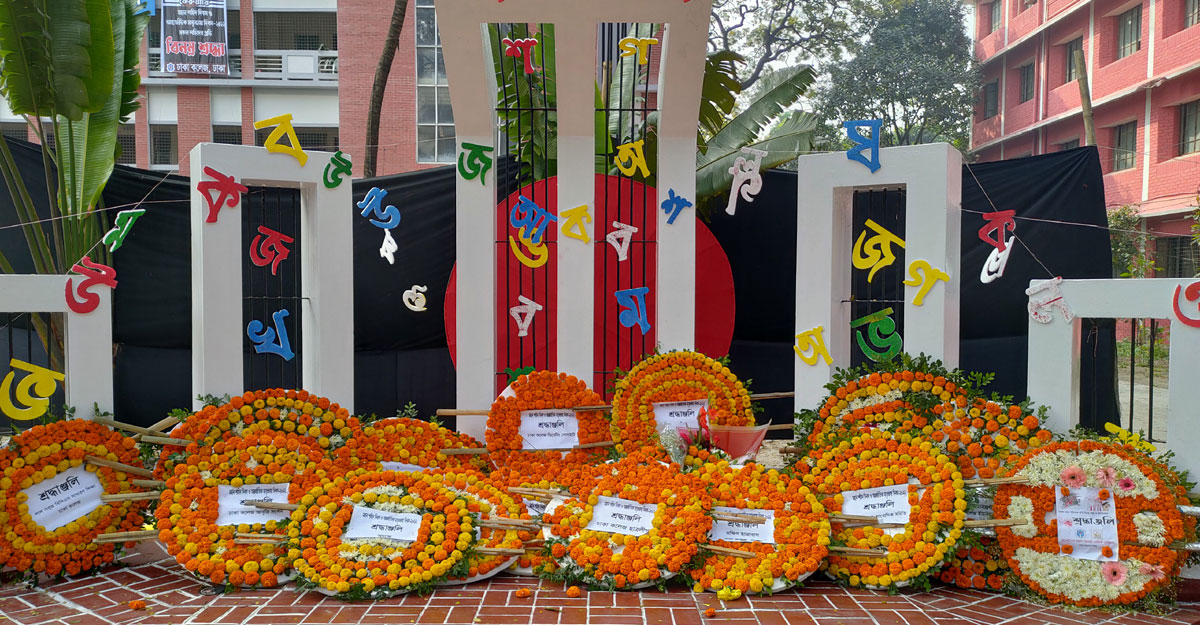 মহান ভাষা আন্দোলনে শহীদদের প্রতি শ্রদ্ধা জ্ঞাপন, জাতীয় পতাকা অর্ধনমিতকরণসহ যথাযোগ্য মর্যাদায় ঢাকা কলেজে পালিত হয়েছে মহান শহীদ দিবস ও আন্তর্জাতিক মাতৃভাষা দিবস।