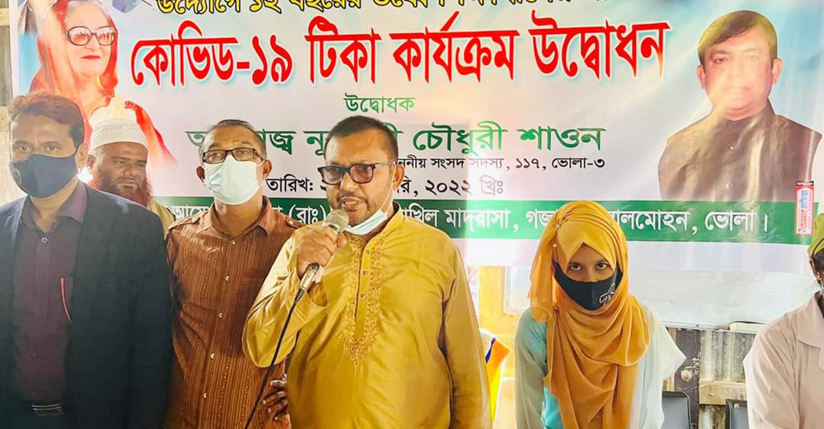 ভোলা-৩ আসনের সংসদ সদস্য নূরুন্নবী চৌধুরী শাওন বলেন, দেশের প্রত্যেক নাগরিকের জন্য কোভিড-১৯-এর টিকা নিশ্চিত করতে চান প্রধানমন্ত্রী শেখ হাসিনা। এ লক্ষ্যে টিকা আমদানির পাশাপাশি দেশেও কোভিড-১৯ এর টিকা তৈরির প্রচেষ্টা করছে সরকার। প্রধানমন্ত্রী শেখ হাসিনা ক্ষমতায় আছেন বলেই আমরা অল্প সময়ের মধ্যেই উপজেলা পর্যায়ে শিক্ষার্থীদের টিকা দিতে সক্ষম হয়েছি।