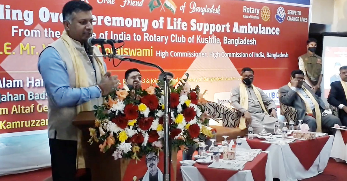 শনিবার (২৬ ফেব্রুয়ারি) দুপুরে রোটারি ক্লাব অব কুষ্টিয়াকে ভারত সরকারের দেওয়া একটি লাইফ সাপোর্ট অ্যাম্বুলেন্স হস্তান্তর অনুষ্ঠানে যোগ দিয়ে তিনি এ কথা বলেন।