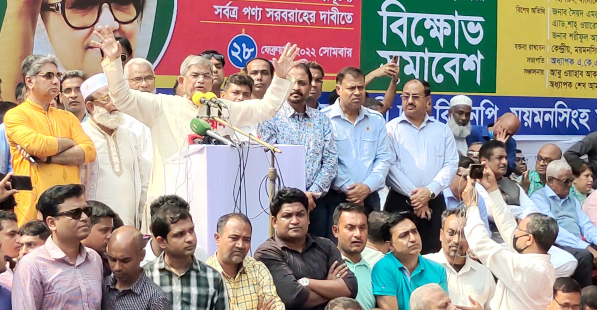 সোমবার (২৮ ফেব্রুয়ারি) দুপুরে ময়মনসিংহ নগরীর নতুন বাজারস্থ দলীয় কার্যালয়ের সামনে আয়োজিত এক বিক্ষোভ সমাবেশে প্রধান অতিথির বক্তব্যে মির্জা ফখরুল এসব কথা বলেন।