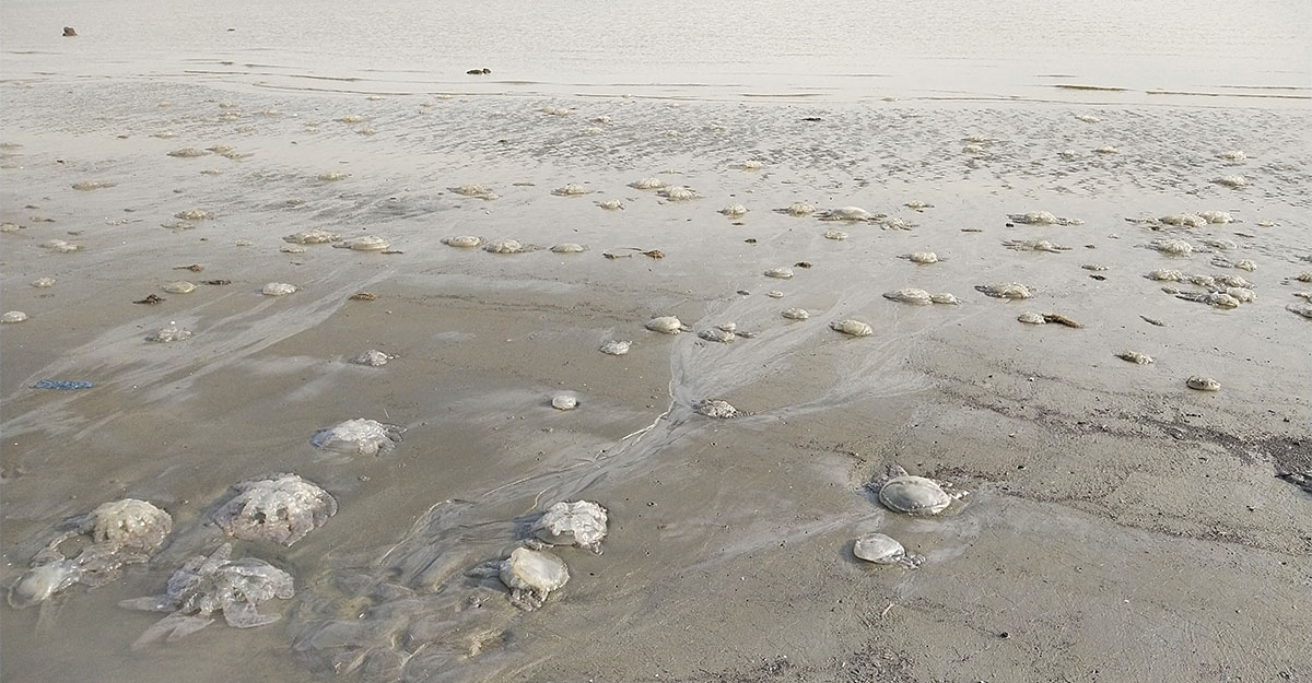 মৃত জেলিফিশে ছেয়ে গেছে কুয়াকাটা সৈকত