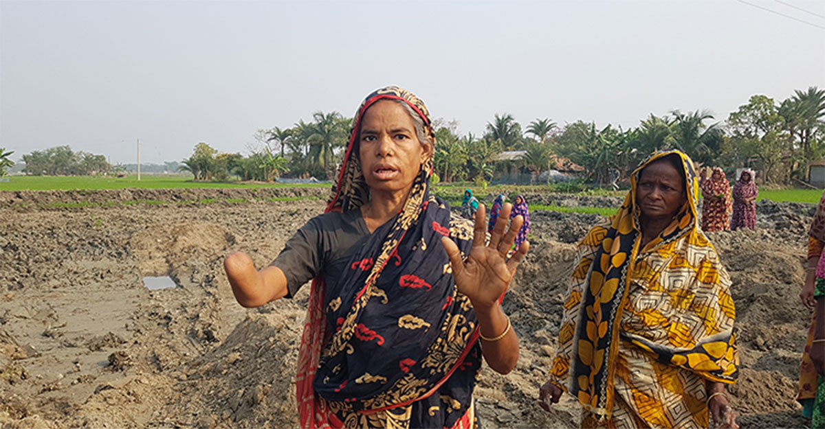 ভূমিহীনদের মধ্যে একজন বালিথা গ্রামের বৃদ্ধ আবুল বিশ্বাসের মেয়ে মনোয়ারা বেগম। স্বামী নেই শারীরিক প্রতিবন্ধী এই নারীর। একটি হাত না থাকায় একসময় ভিক্ষাবৃত্তি করলেও ভূমিহীন জনপদে থেকে এক টুকরো জমিতে ধান চাষ করে জীবিকা নির্বাহ করতেন তিনি। তাই ছেড়ে দিয়েছিলেন ভিক্ষাবৃত্তি। তবে এখন তিনি কী করবেন ভেবে পাচ্ছেন না।