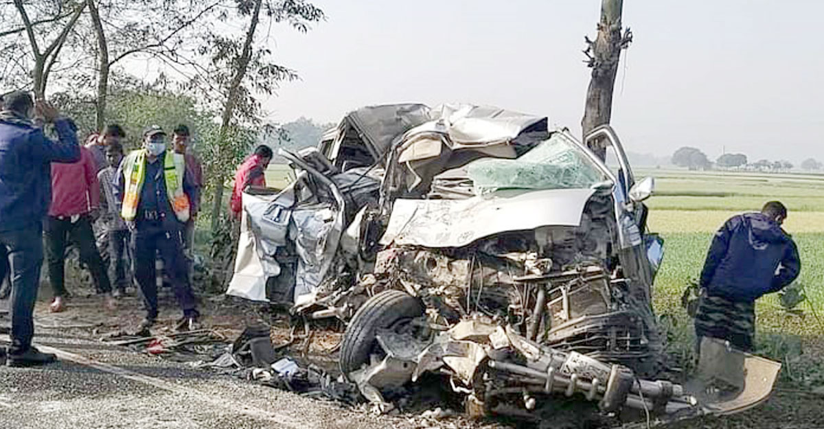 দুমড়ে মুচড়ে যাওয়া মাইক্রোবাস