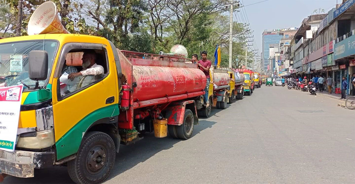 ৬ দফা দাবিতে সিলেট নগরজুড়ে ট্যাংক লরির মহড়া